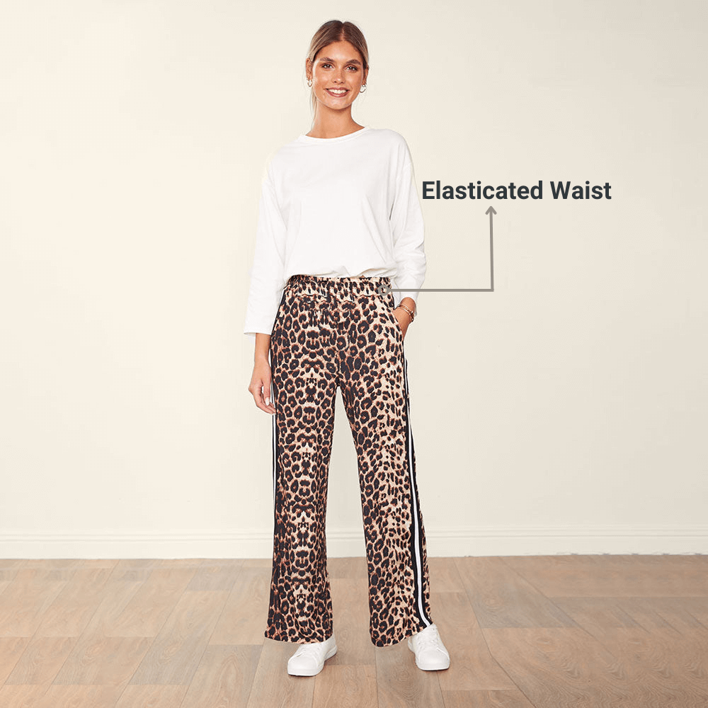 Feel confident and stylish with the Eliza Joggers in leopard print—designed for comfort, with a fierce look that effortlessly elevates your everyday style.