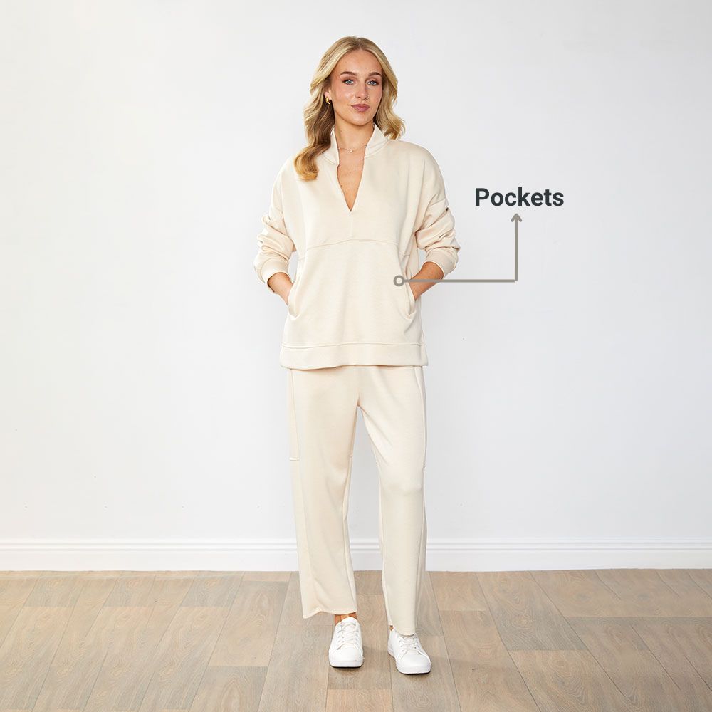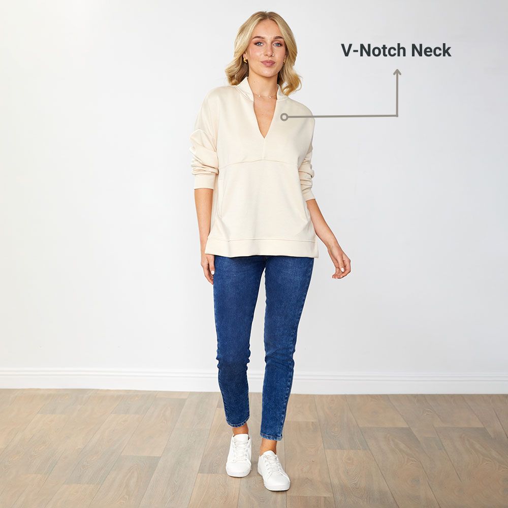The Emmy Jumper blends a chic V-notch neckline, relaxed fit, and handy pockets for effortless cool.