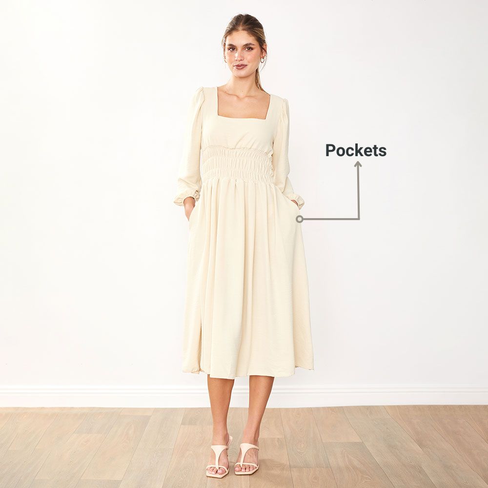"Love this dress – so flattering and comfy, the shirred waist makes it feel amazing on."