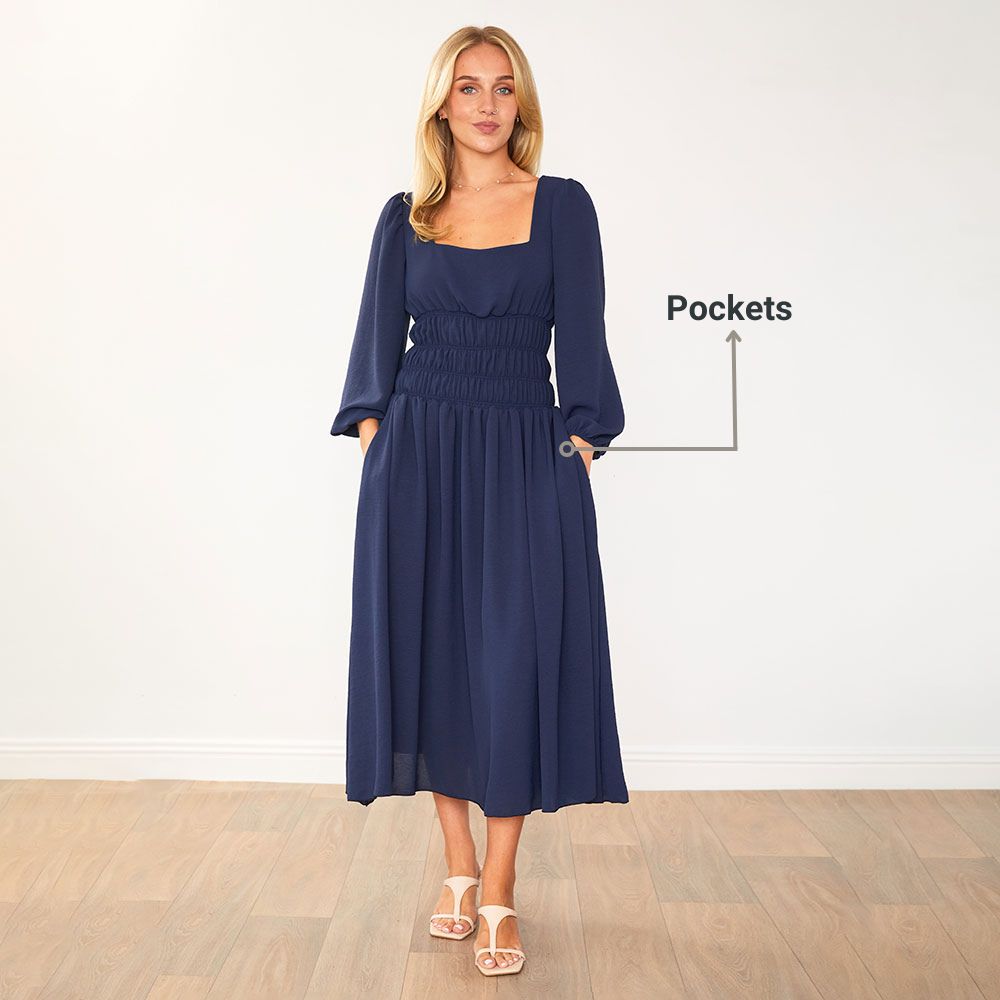 The Evelyn Dress is where timeless elegance meets everyday ease – with its square neckline, flattering shirred waist, and floaty balloon sleeves, it’s the dress that makes effortless chic feel natural.