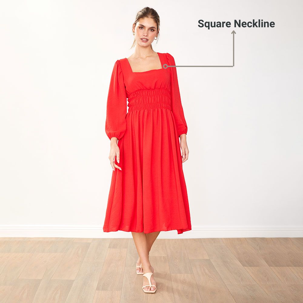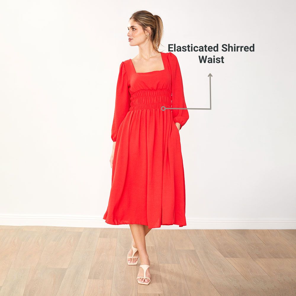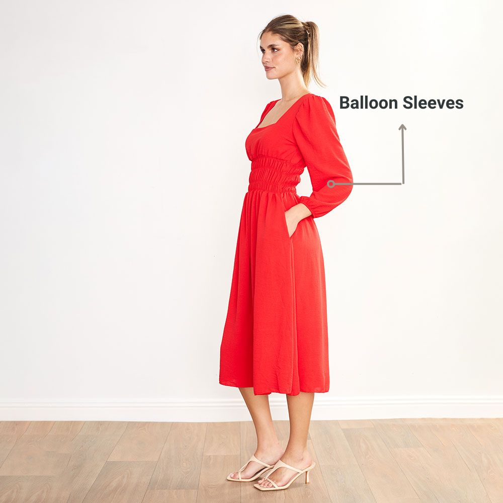 The Evelyn Dress is where timeless elegance meets everyday ease – with its square neckline, flattering shirred waist, and floaty balloon sleeves, it’s the dress that makes effortless chic feel natural.