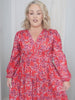 Turn heads with the Gina Dress in Red Floral. This eye-catching dress features a bold red color paired with a striking floral print, perfect for making a statement wherever you go. The V-neckline and 3/4 sleeves add a touch of elegance, while the fit-and-flare silhouette flatters every figure. Made from soft, breathable fabric, this dress is ideal for all-day wear, whether you're attending a special event or enjoying a casual outing. Pair it with neutral accessories to let the dress shine, or go bold with contrasting colors for a more daring look. The Gina Dress in Red Floral is your go-to for vibrant, confident style.