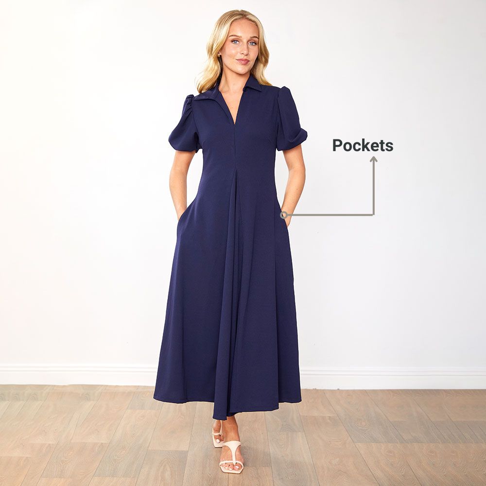 Turn heads with ease in a dress that balances crisp structure, soft details, and pockets made for real life.