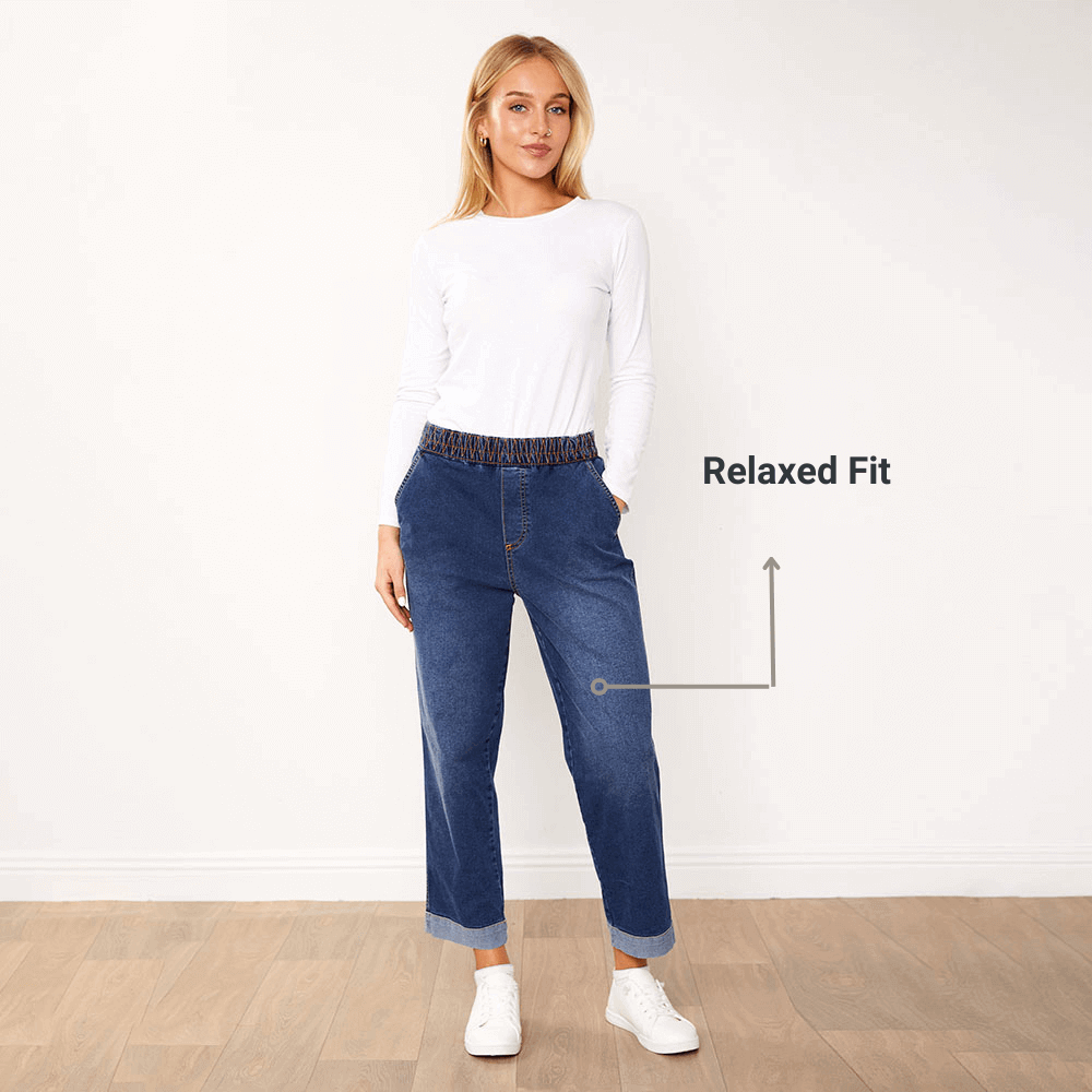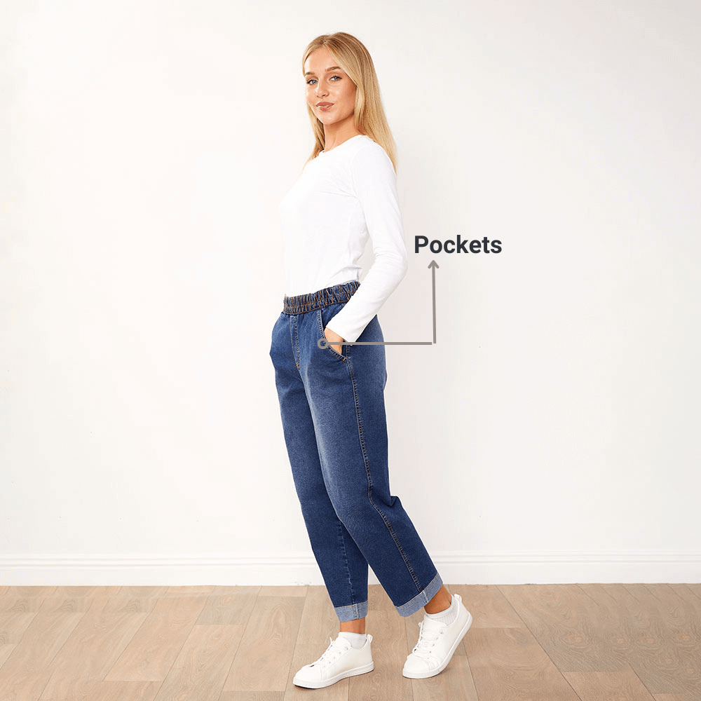 Looking for the perfect blend of style and comfort? The Kia Jeans in Denim Blue have you covered. Featuring a relaxed fit and elasticated waistband, these jeans are designed to keep you comfy while looking effortlessly cool. Deep side pockets add practicality, and the cropped ankle length with cuffed hems offers a modern touch to a classic style. Made from soft, breathable denim, they’re perfect for those busy days when you want to feel as good as you look. Whether you're heading out for a casual day with friends or just running errands, the Kia Jeans are your go-to for a stylish, laid-back vibe. Get ready to step into effortless style!