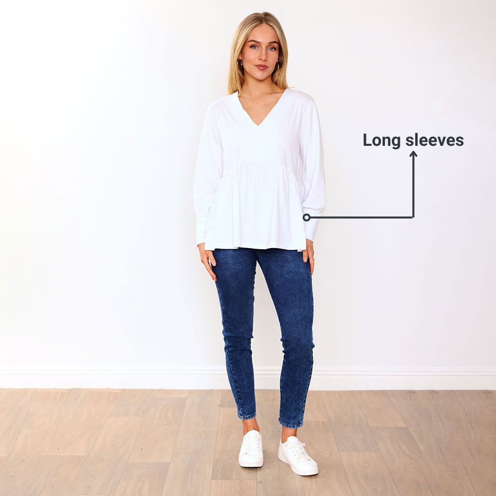 The Luna Top is the definition of effortless elegance 🤍 Featuring a flattering V-neckline and an easy relaxed fit, it drapes beautifully for a look that feels as good as it looks. The softly gathered waist seam adds gentle shape and movement, while the long sleeves make it perfect for layering or wearing on its own. A timeless piece you’ll reach for again and again. ✨
