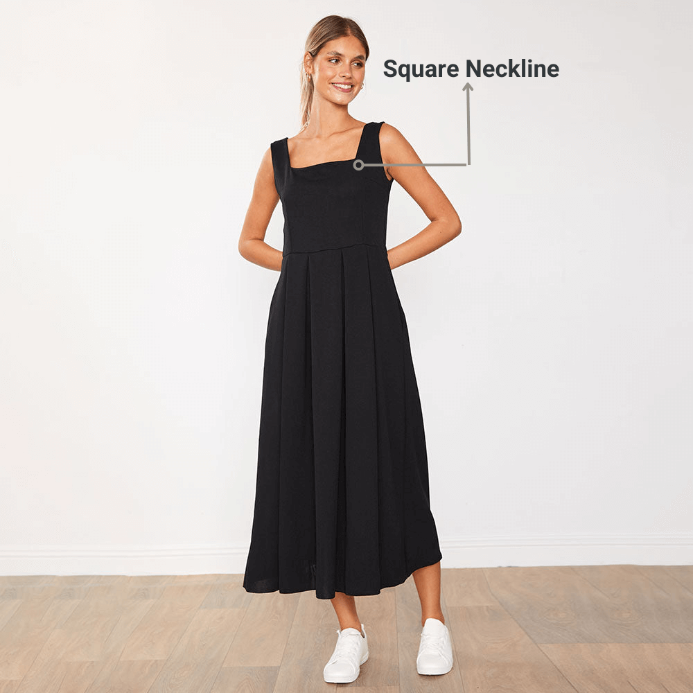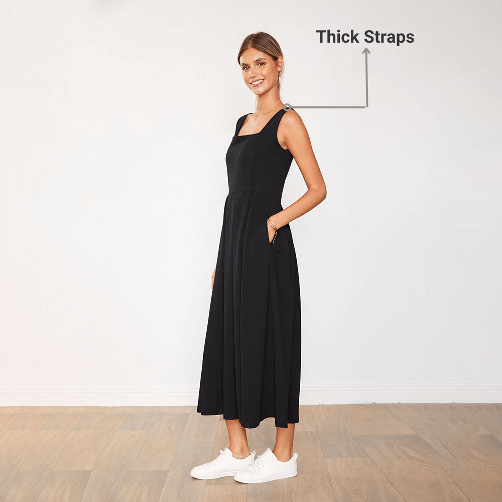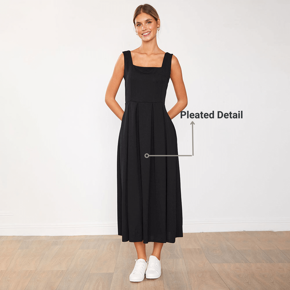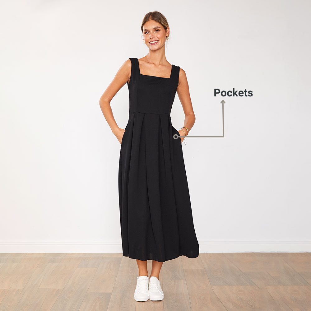 The Maddie Dress combines stylish design with practical features for everyday convenience.