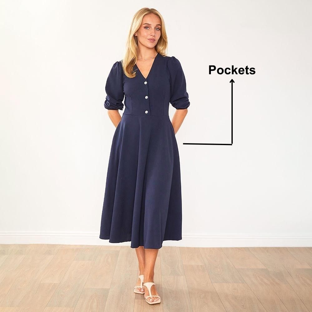 "Absolutely gorgeous dress – the fit is so flattering and I love the button detail."