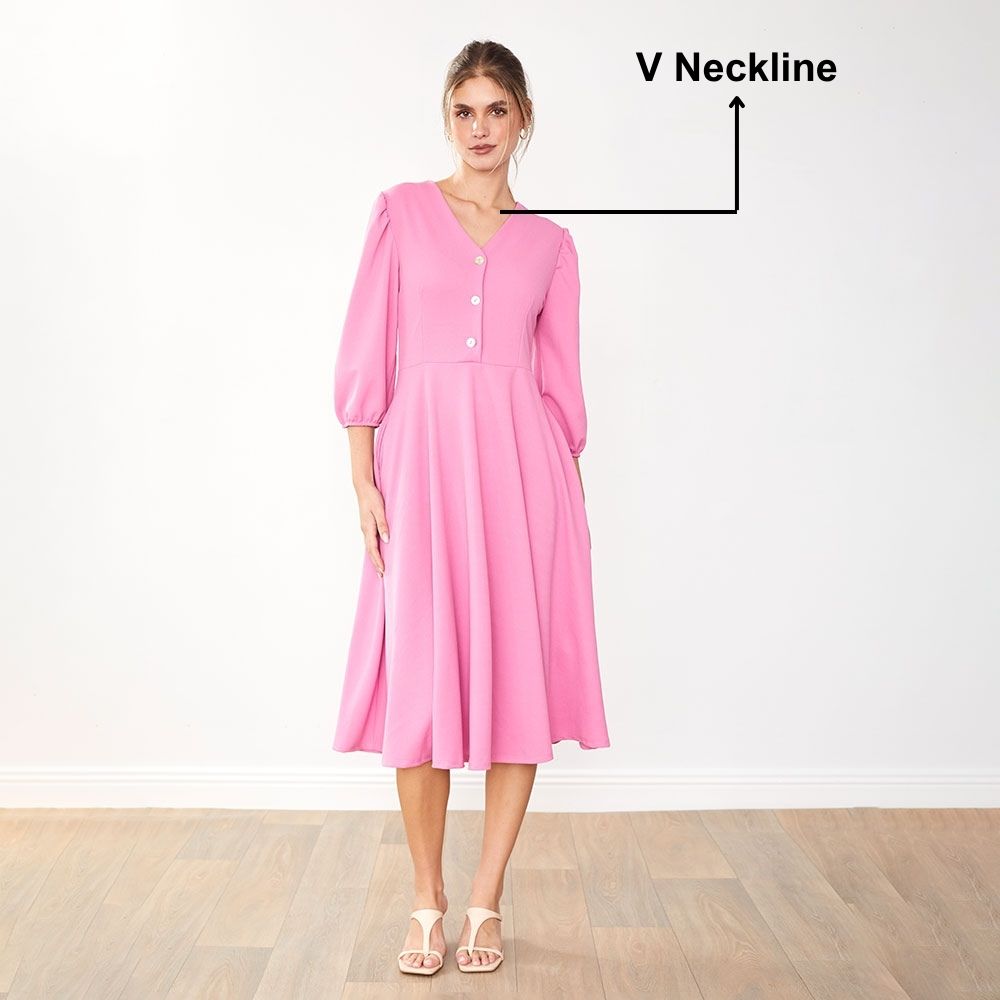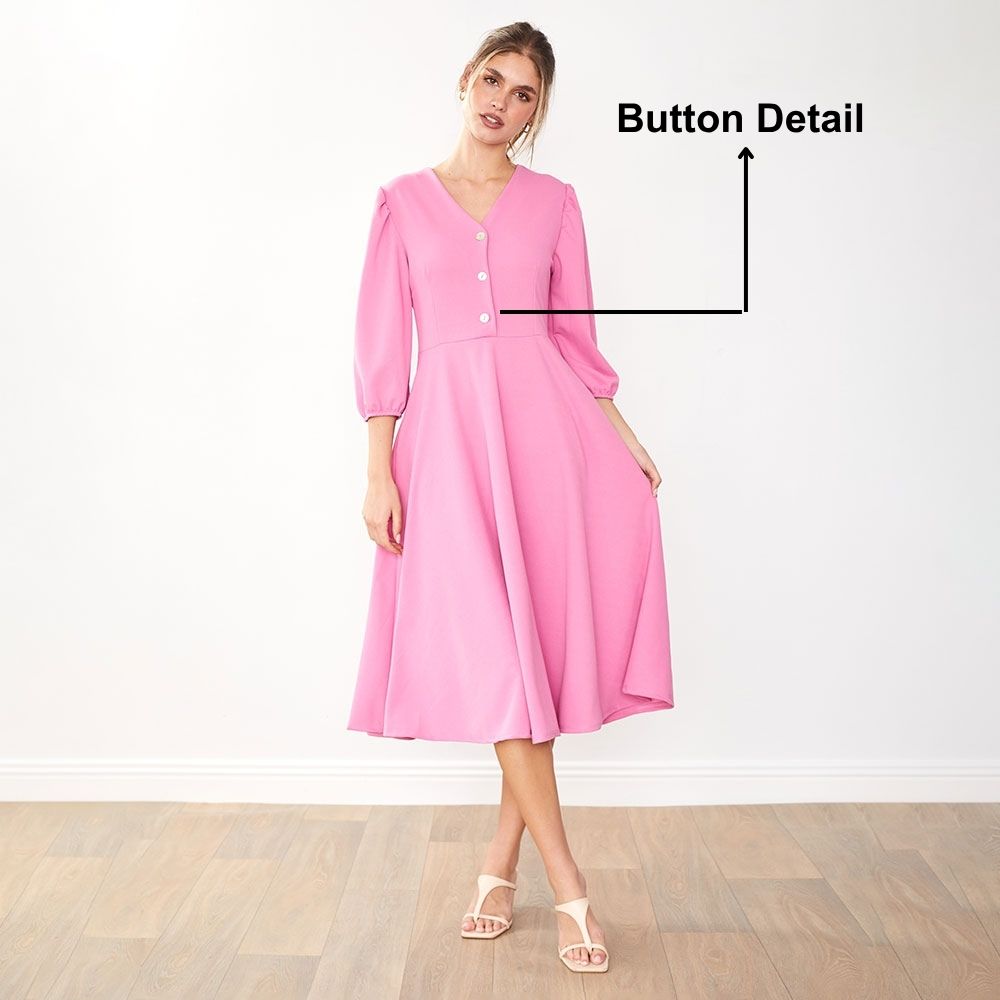 "Absolutely gorgeous dress – the fit is so flattering and I love the button detail."