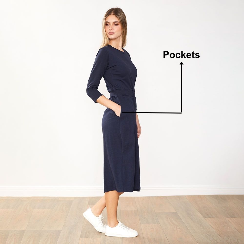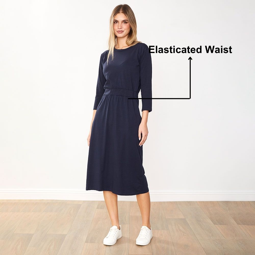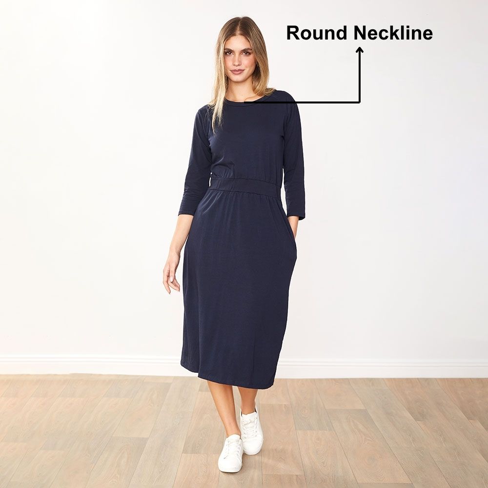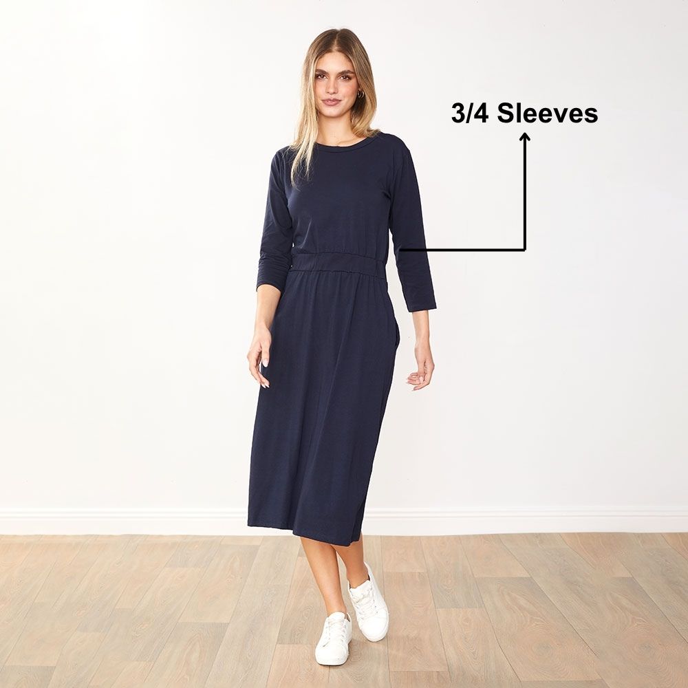 The Mara Dress is elegance without the effort. 🌸 A classic round neckline, relaxed silhouette, and cinched elastic waist create a flattering fit you’ll love. With 3/4 sleeves and practical pockets, it’s the easygoing dress that keeps chic on speed dial.