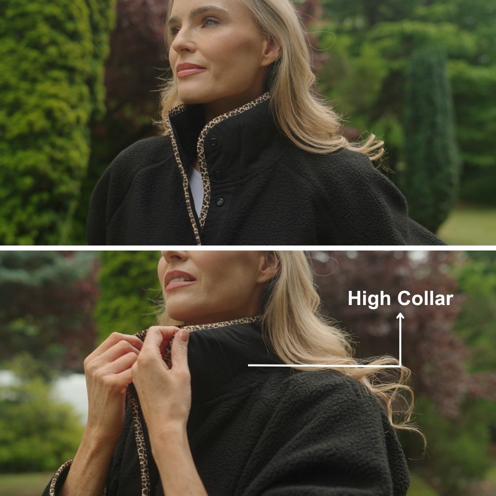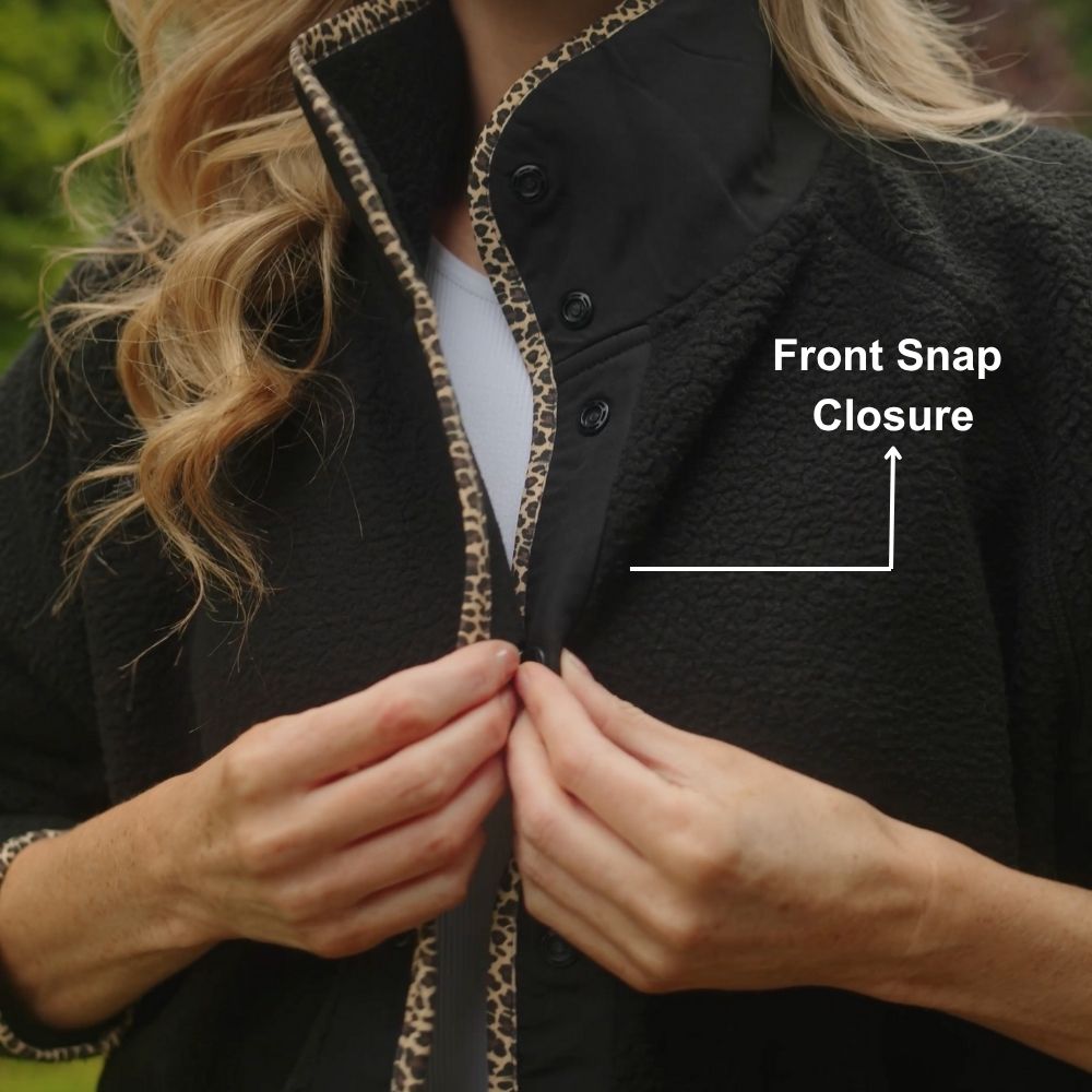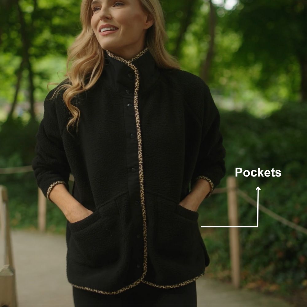 Molly Fleece Jacket (Black/Leopard Trim)