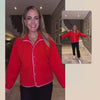 “This jacket is fab! The coral and pink trim look amazing in person — warm, stylish, and so easy to wear.”