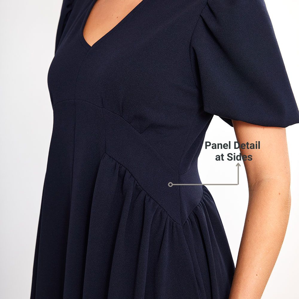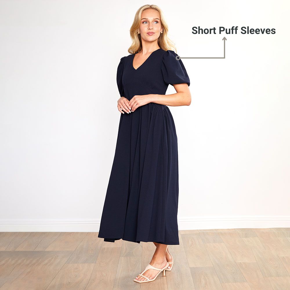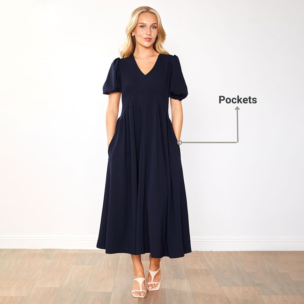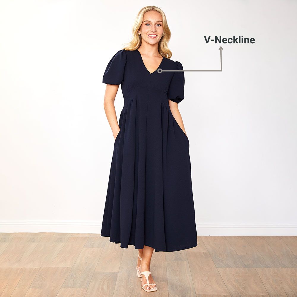 “The Nicole Dress brings effortless elegance to your everyday. With its flattering V-neckline, romantic puff sleeves, and figure-enhancing side seams, it’s made to flatter and flow with ease. And the best part? Hidden pockets that blend style with practicality.