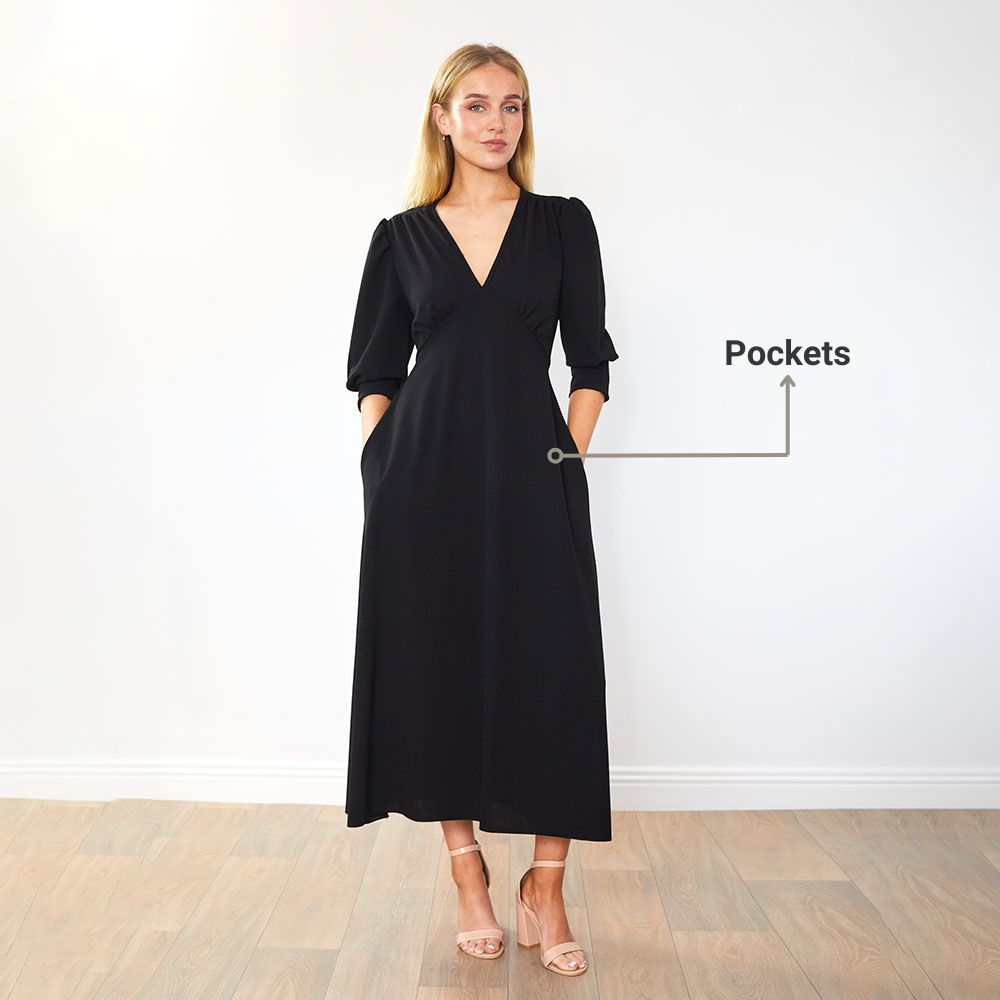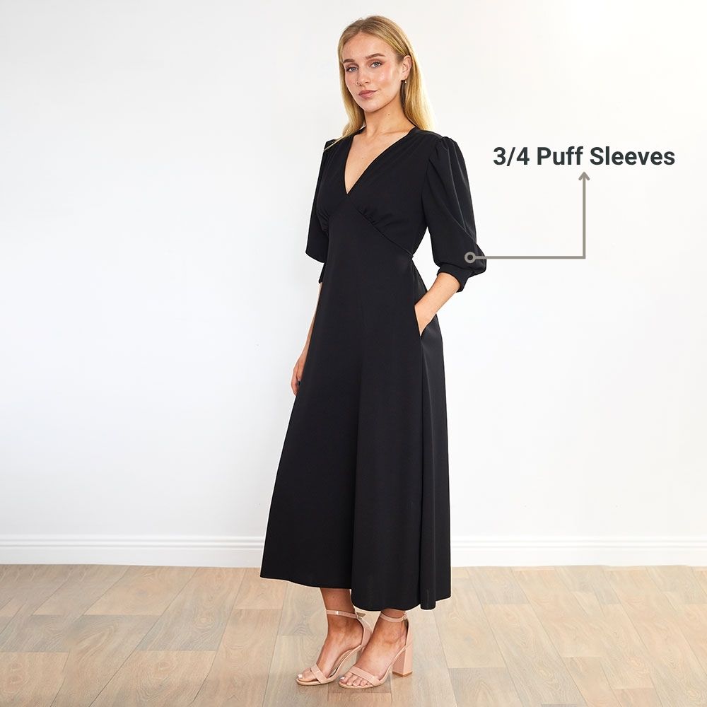The Oakley Dress is the definition of quiet drama and timeless elegance. 💕 Its V-neckline draws the eye with effortless sophistication, while the 3/4 length puff sleeves add just the right touch of volume for a graceful, feminine finish. The empire waistline cinches softly under the bust, creating a flattering, elongated silhouette that flows beautifully with every move. And yes — it has pockets, because true style always meets practicality. ✨ The Oakley Dress is made to move with you, from morning light to evening glow — refined, confident, and utterly unforgettable.