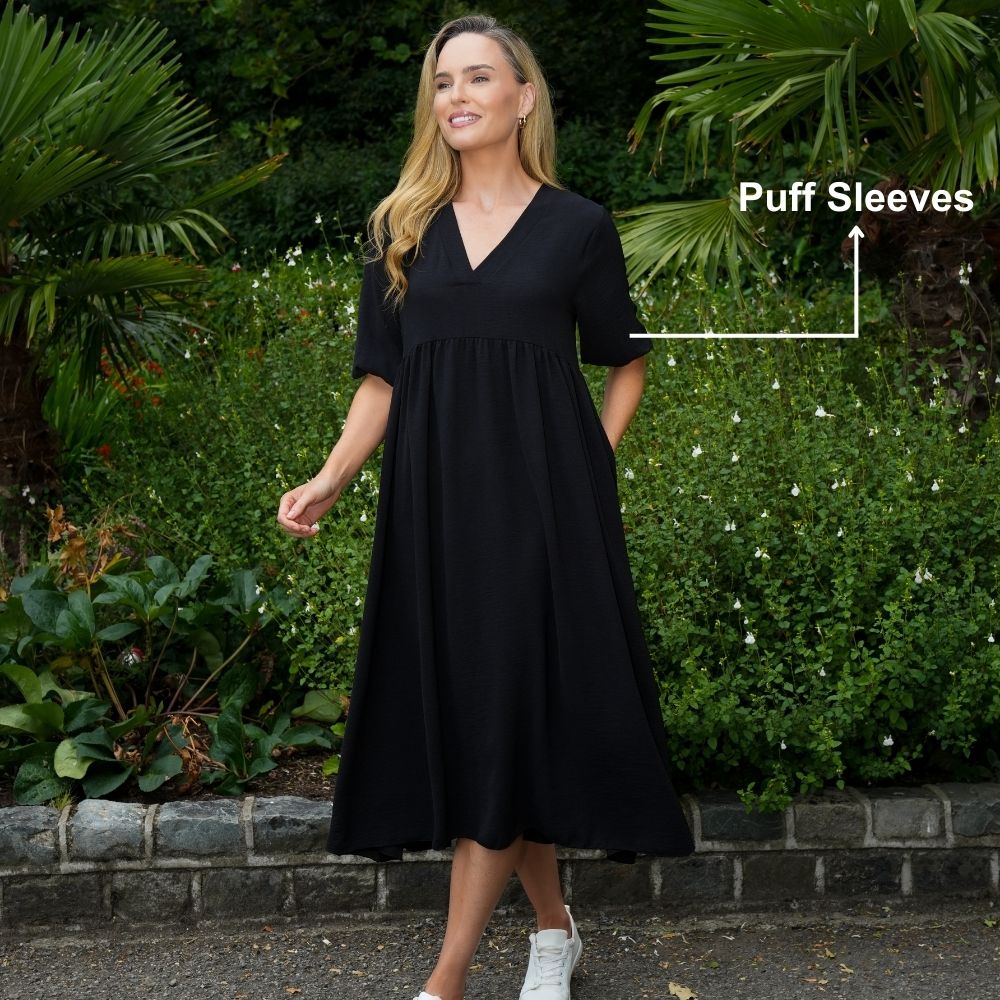 Style, comfort, and pockets—everything you need in one easy, head-turning dress.