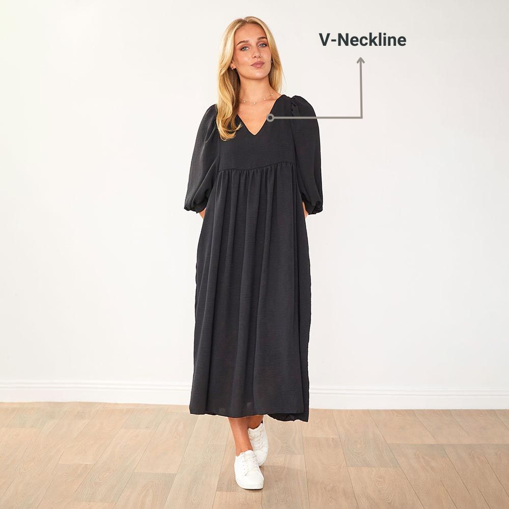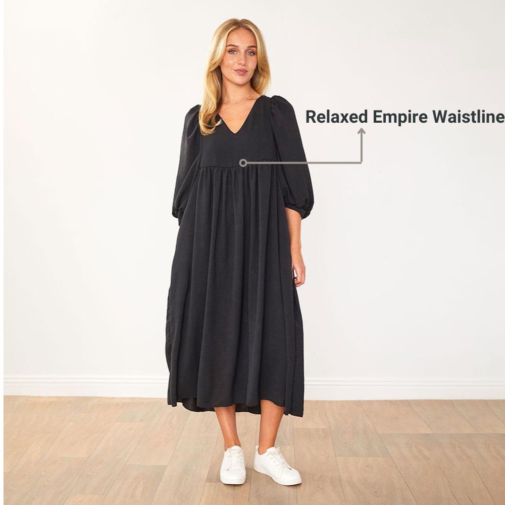 The Porcha Dress is your go-to for effortless chic – with its flattering V-neckline, floaty balloon sleeves, and a breezy silhouette that moves with you, it’s style made simple.