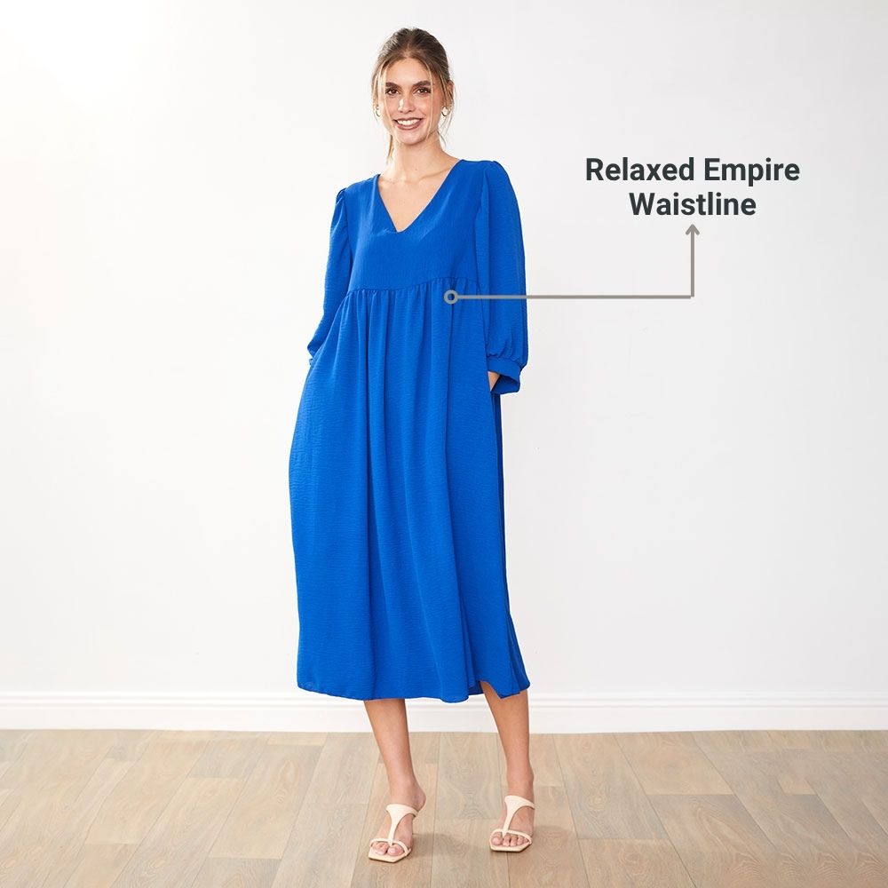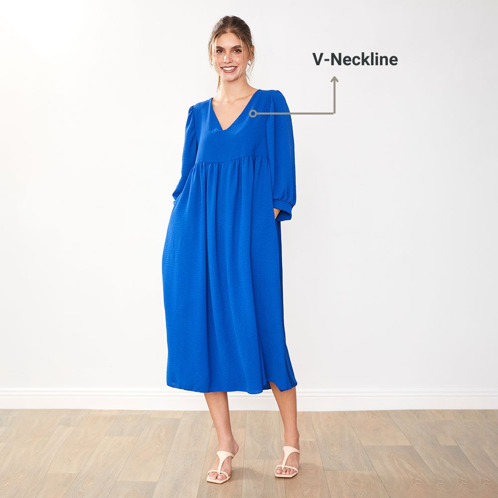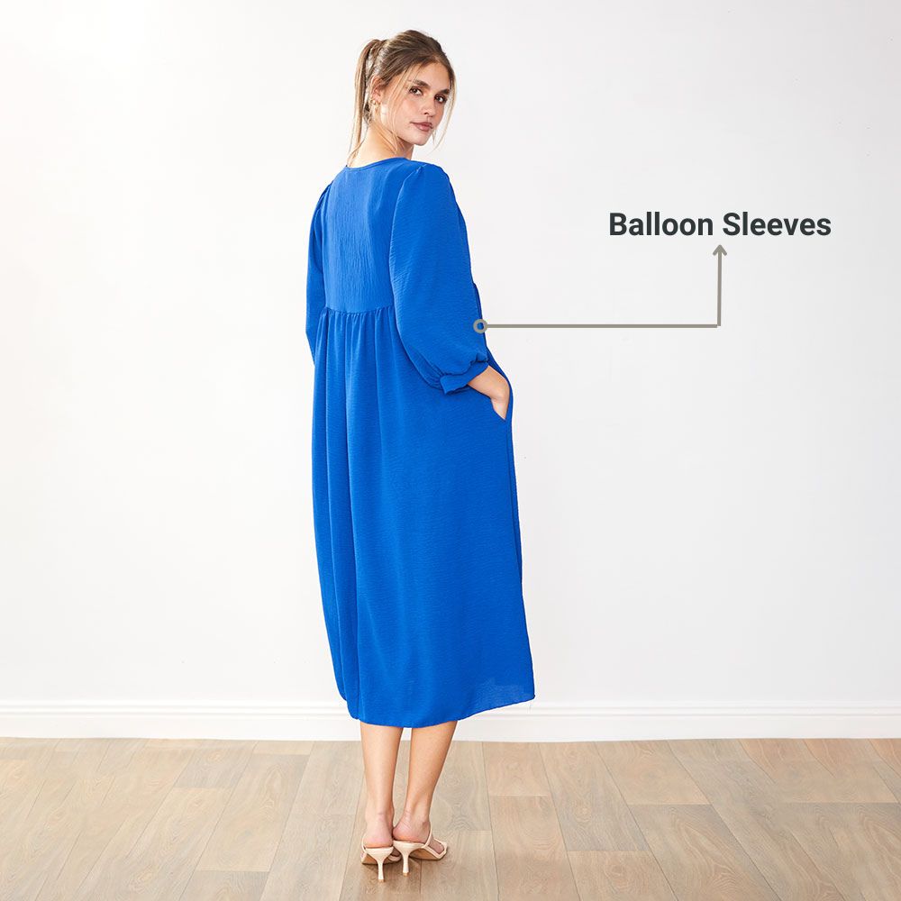 The Porcha Dress is your go-to for effortless chic – with its flattering V-neckline, floaty balloon sleeves, and a breezy silhouette that moves with you, it’s style made simple.