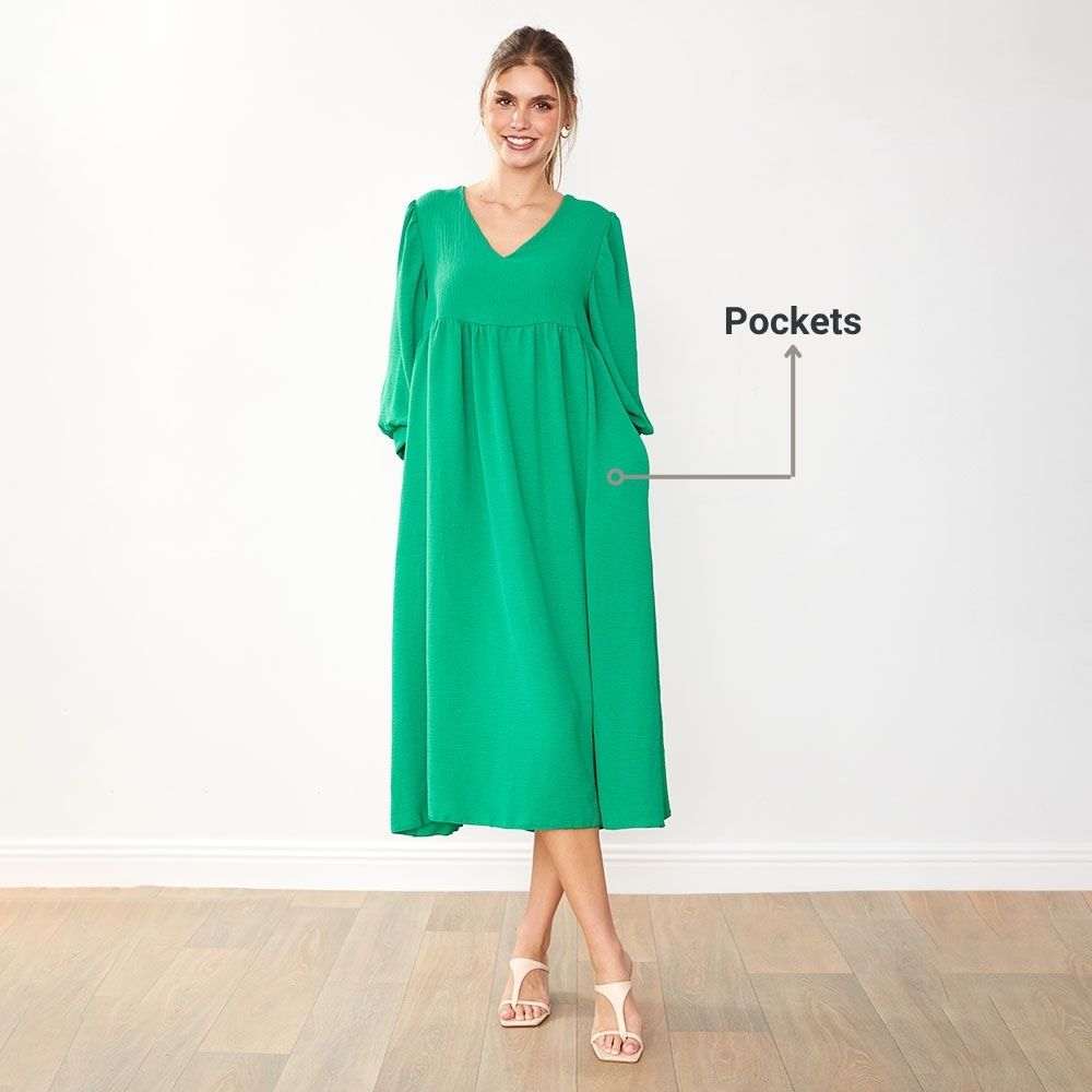 The Porcha Dress is your go-to for effortless chic – with its flattering V-neckline, floaty balloon sleeves, and a breezy silhouette that moves with you, it’s style made simple.